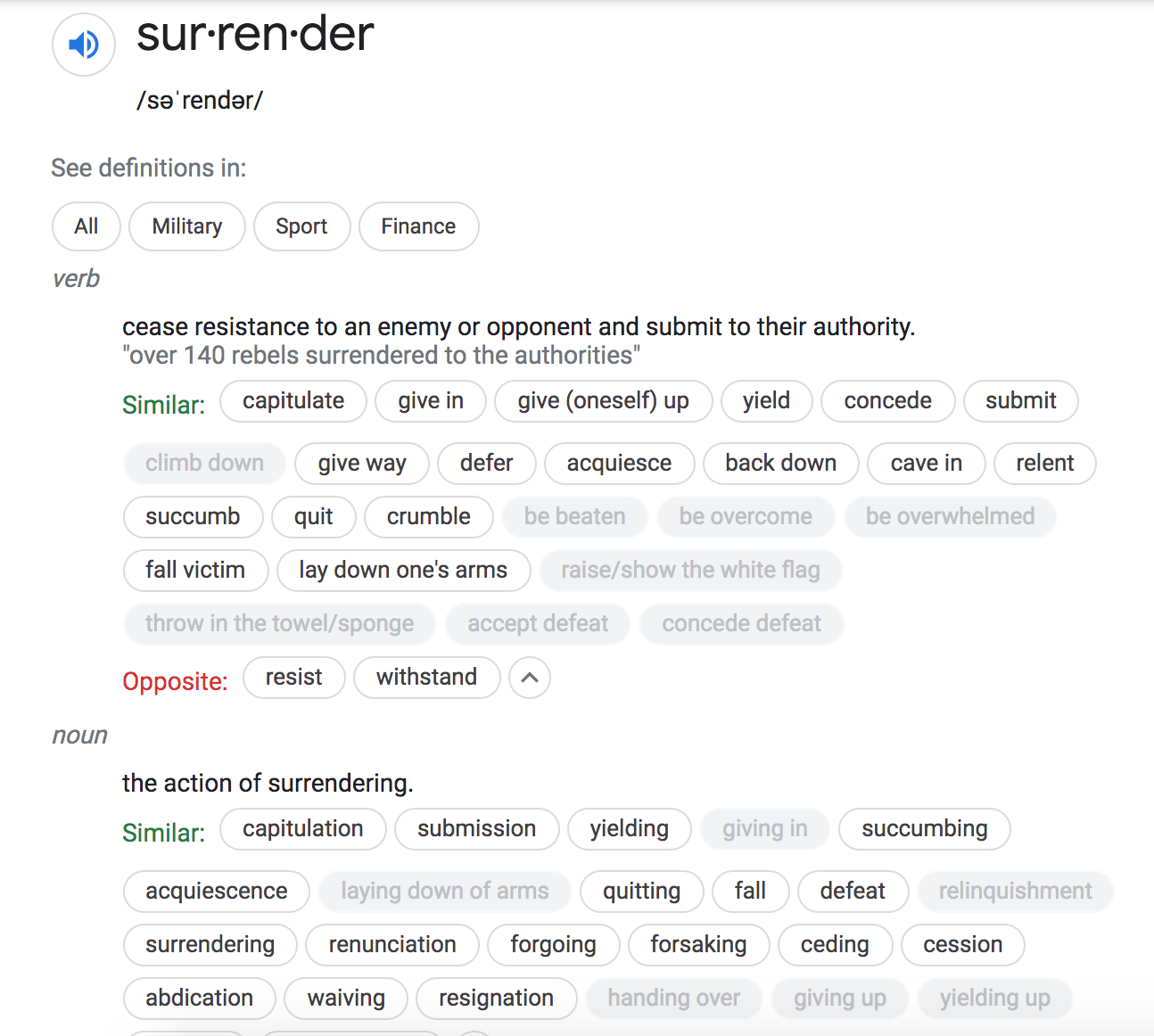 A quick Google search left me feeling a little angry with the definition of surrender.